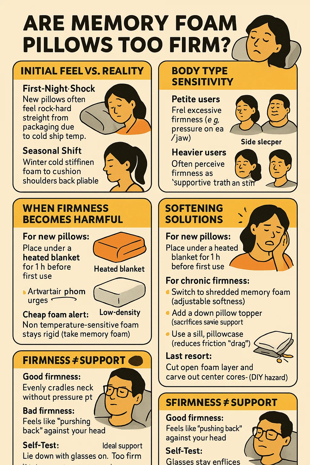 Для хронічної стійкості: → Переключення на подрібнену піну пам'яті (регульована м'якість). → Додайте вниз подушку (жертвує певною підтримкою). → Використовуйте шовкову подушку (зменшує тертя "перетягування").