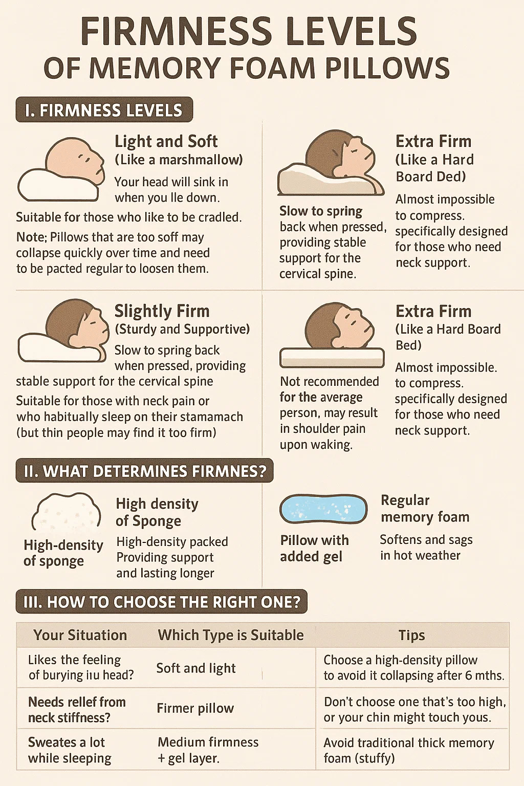 | Потрібне полегшення ригідності шиї | Firm Support Memory Foam | Уникайте високого зросту → запобігає стягуванню підборіддя |